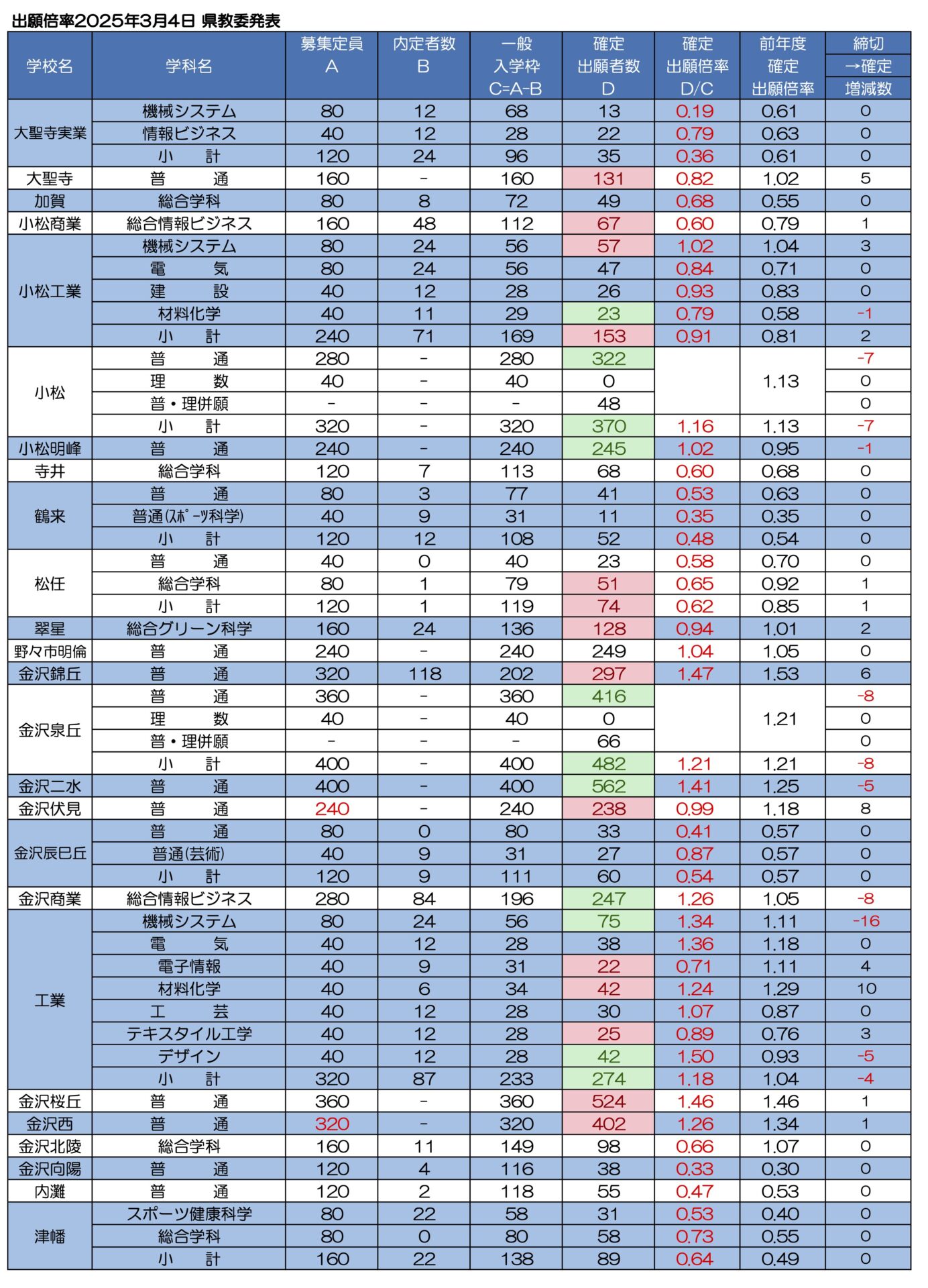 2月24日(火) 出願倍率(1次締切)